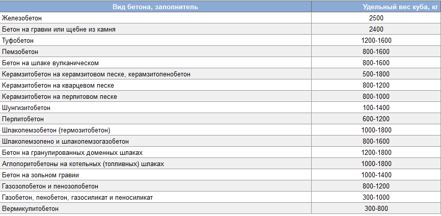 Кавабанга! Плотность разных видов бетона в кг/м3