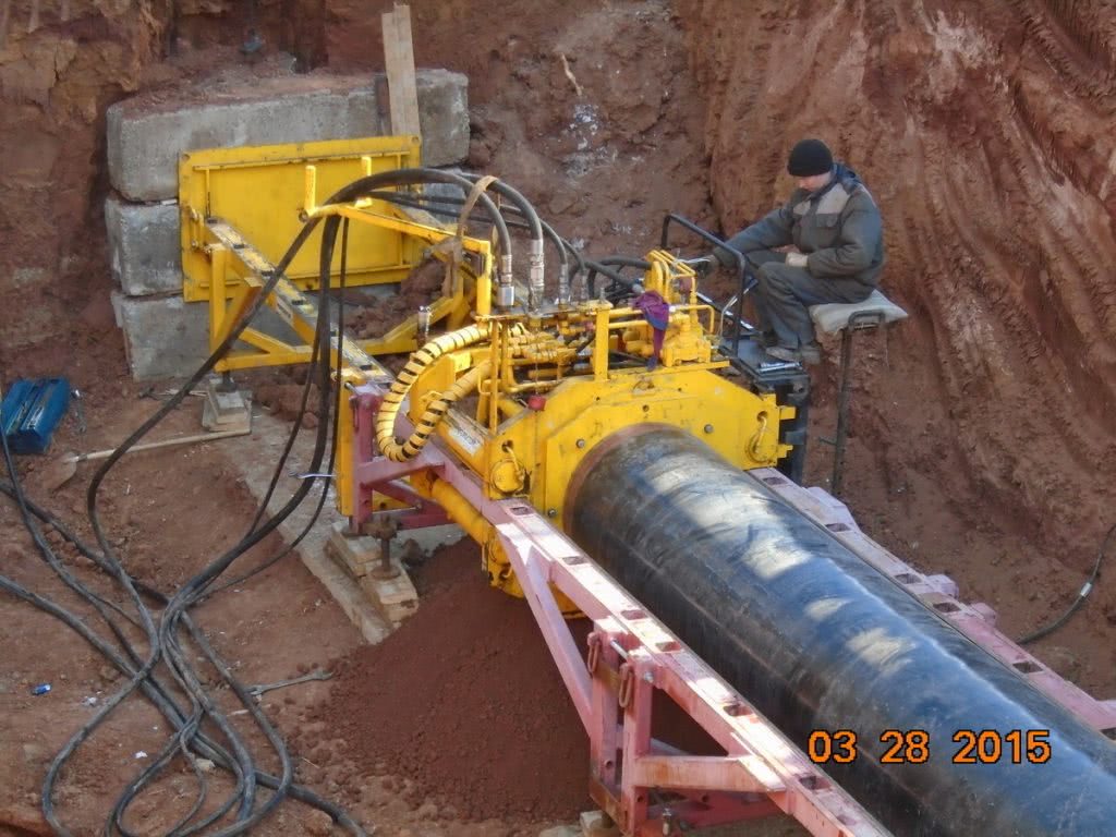 Третий этап заключается в подготовке рабочей трубы и ее продавливании вслед за обсадной трубой. После укладки труб в полученный канал буровая установка и другое оборудование извлекается из котлована, части коммуникации соединяются между собой.