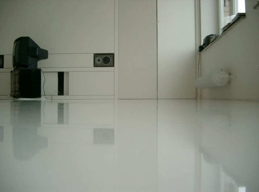 Обязательно перед заливкой пола следует учитывать, что на глянцевых поверхностях легко появляются царапины, не поддающихся шлифовке.