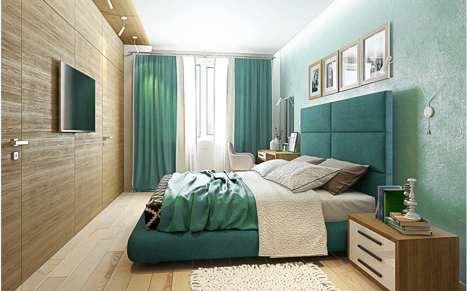 Если у вас есть время на ремонт, решите перекрасить одну из стен в мятный цвет. Это решение идеально подходит для спальни. Вы можете сочетать мятный цвет по-современному с геометрическими узорами, а также придать цвету романтичный характер, сочетая его с элементами с цветочным мотивом.