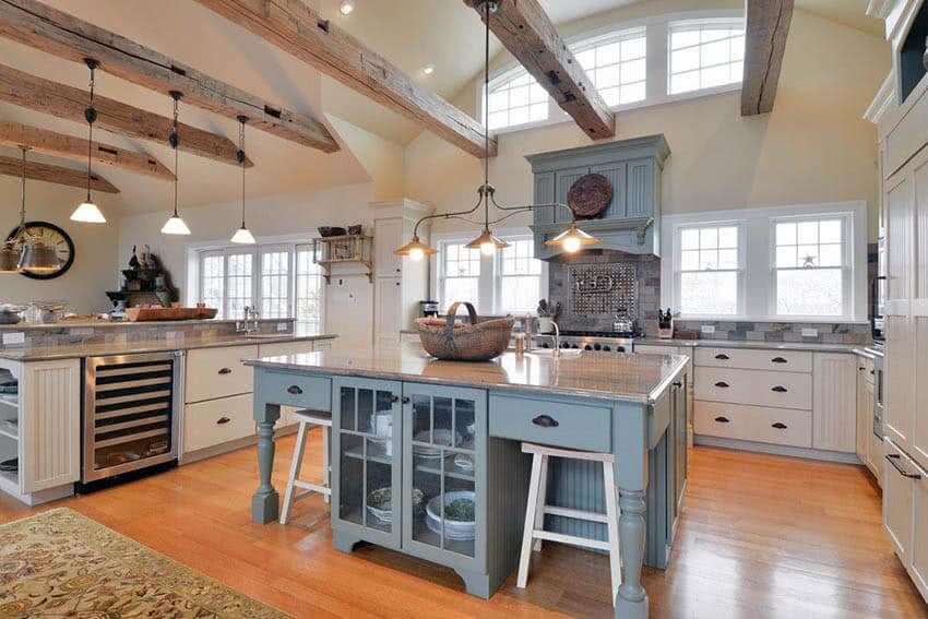 - Открытые деревянные балки.