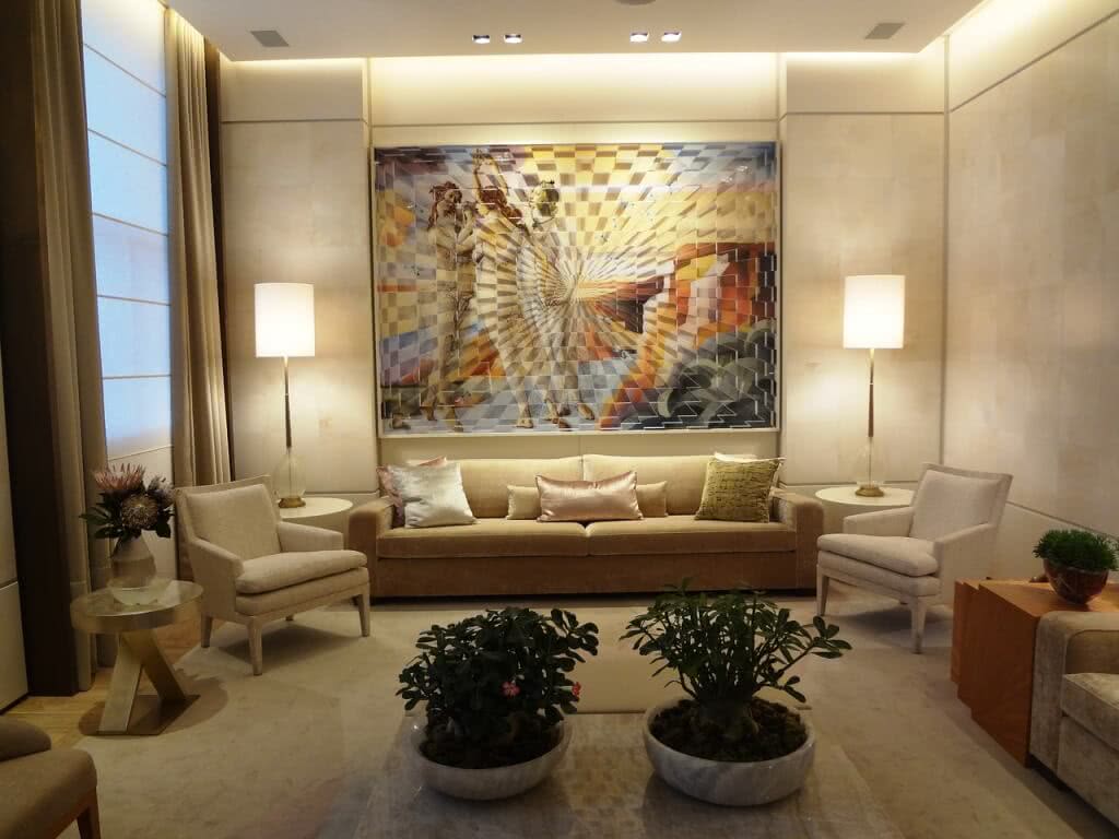 Оформление интерьера современных квартир в светлых тонах – белых, бежевых и серых – создает расслабляющую, располагающую к ленивому времяпровождению, обстановку. Допускаются небольшие цветовые акценты – синий, розовый, фиолетовый, желтый, красный и т.д. Люминесцентная подсветка, точечные светильники, массивная люстра и бра не только осветят комнату, обозначив световые акценты, но и послужат дополнительными украшениями.