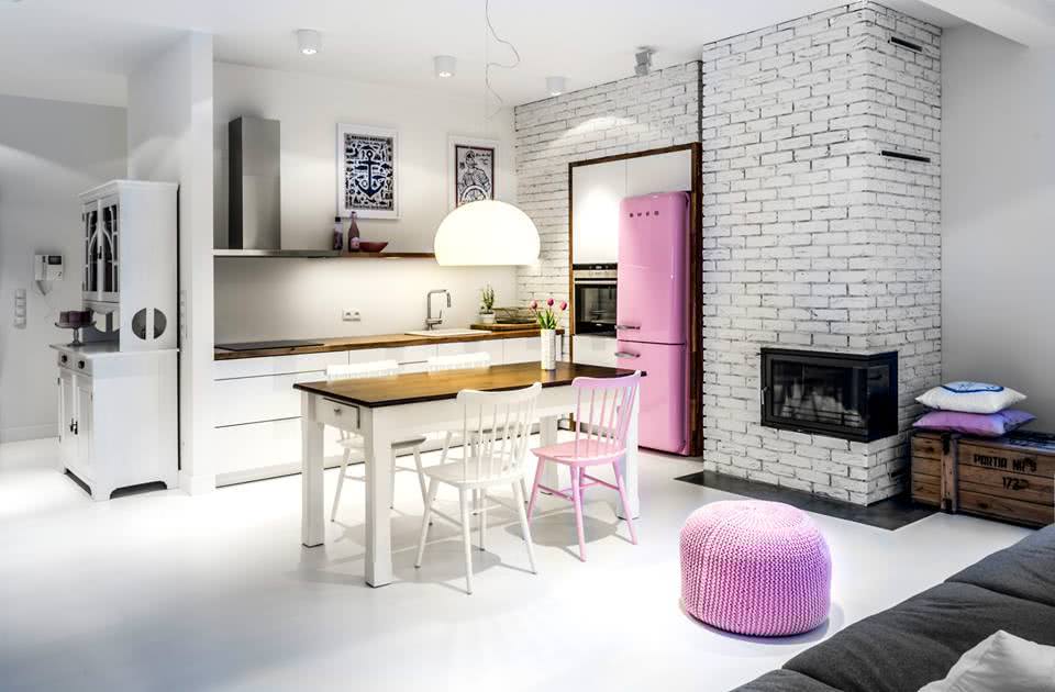 Если комнаты объединены и перегородки демонтированы, тогда такой путь не годится. В кухнях-столовых популярно зонирование при помощи углового гарнитура, барных стоек и «островов». А вот если помещения не соединены между собой, часто на первый план выходит проблема свободного места.
