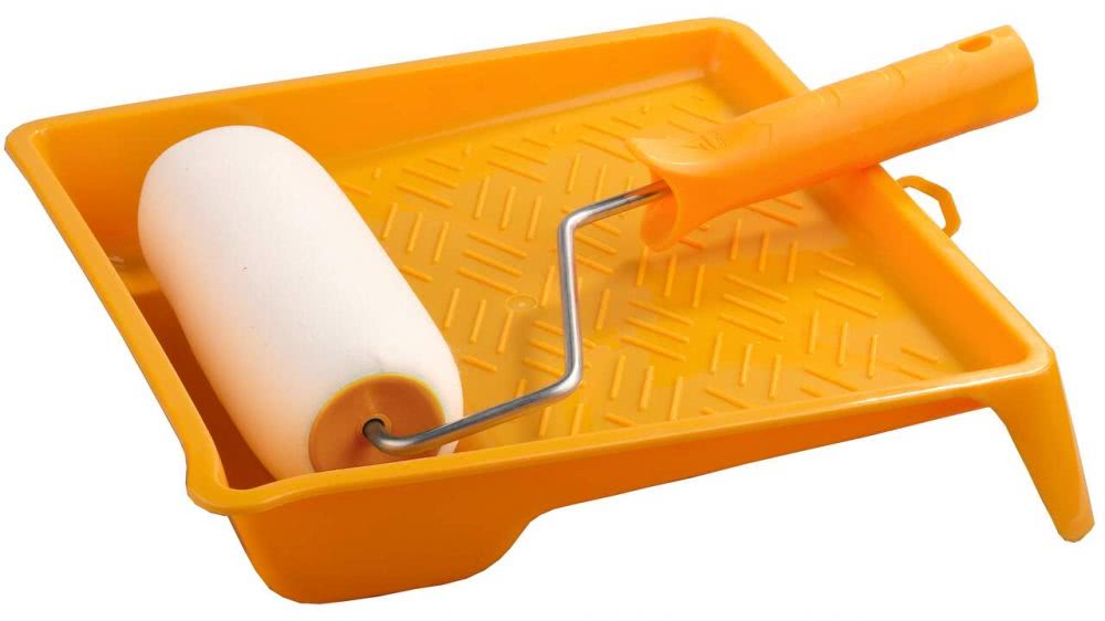 валик для грунтовки. Удобно работать изделием на длинной телескопической ручке, высота ворса должна быть средней или малой;