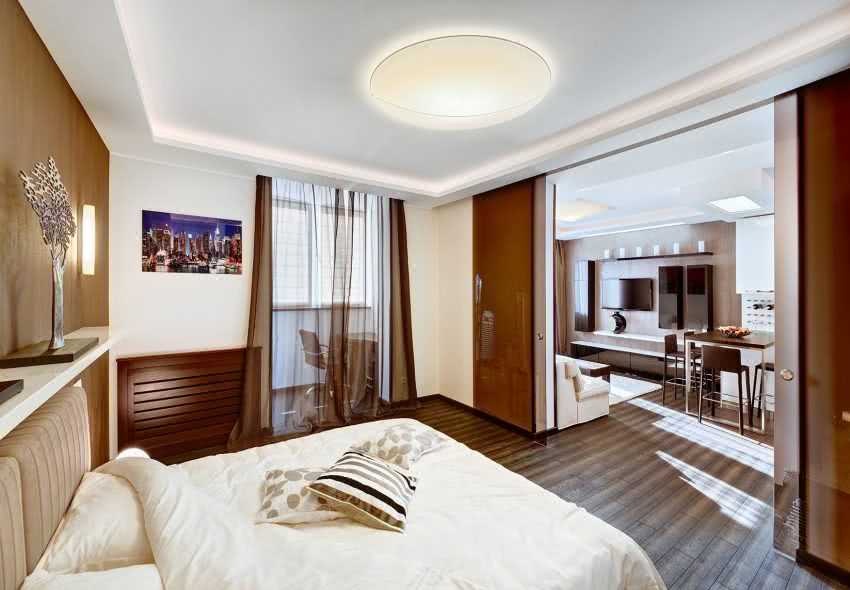 Гостиная и спальня в одной комнате дают возможность сэкономить полезное пространство к квартире.