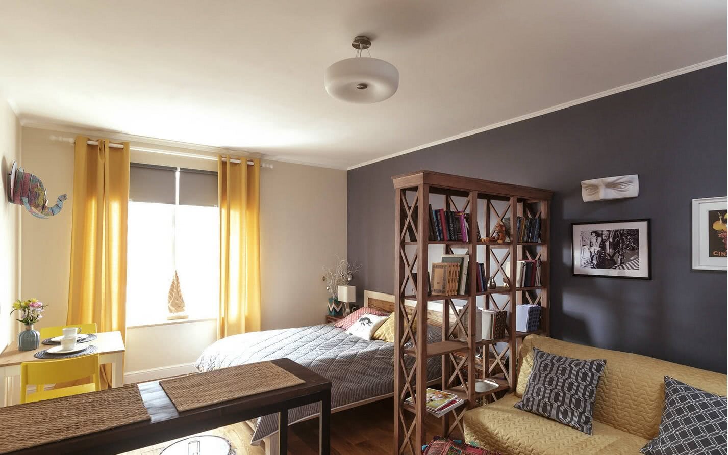 Если со студией ничего не получится, то организации спальни-гостиной никто не помешает. Разграничение пространства можно осуществить за счет: