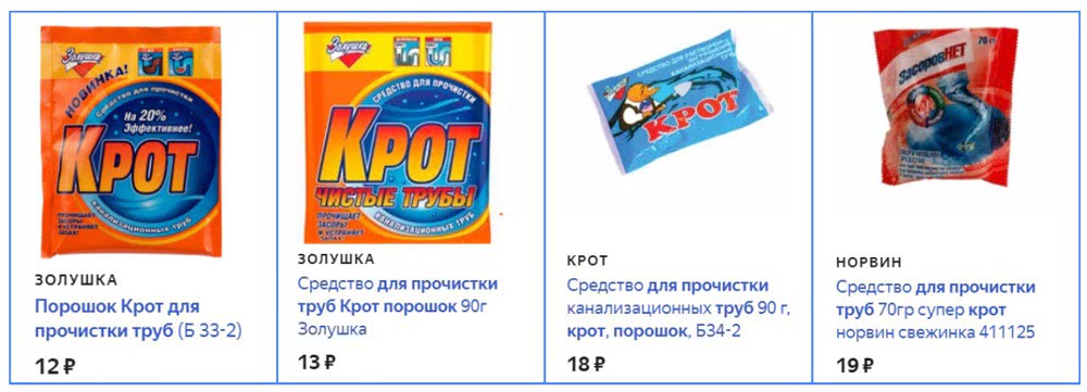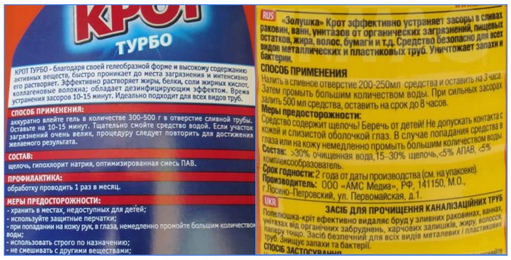 На рынке есть подделки Крота для прочистки труб. Они отличаются от оригинальных составов качеством упаковки.
