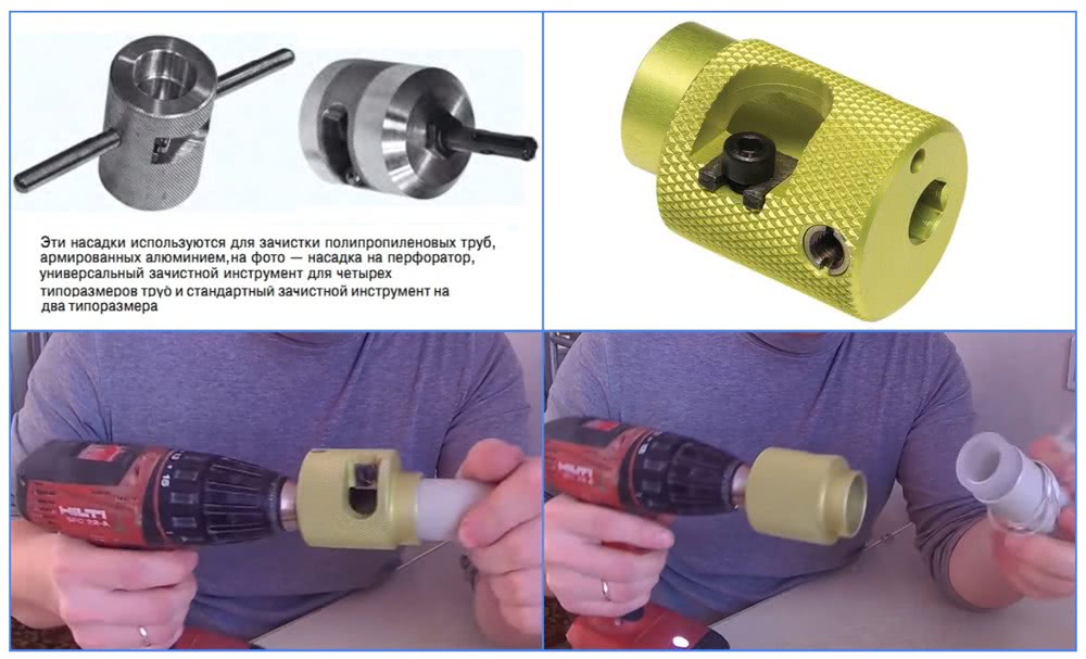 Рис. 12 Шейвера для снятия наружного армирования ПП труб и пример их использования