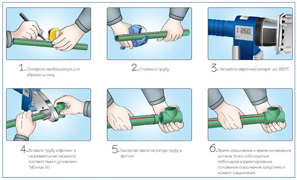 Прочность и надежность полипропиленового водопровода обеспечивает и способ их соединения. Проводится он методом сварки. Это обеспечивает монолитность и прочность. В процессе эксплуатации не возникает необходимость постоянно подтягивать соединения, как в случае с металлическими трубопроводами.
