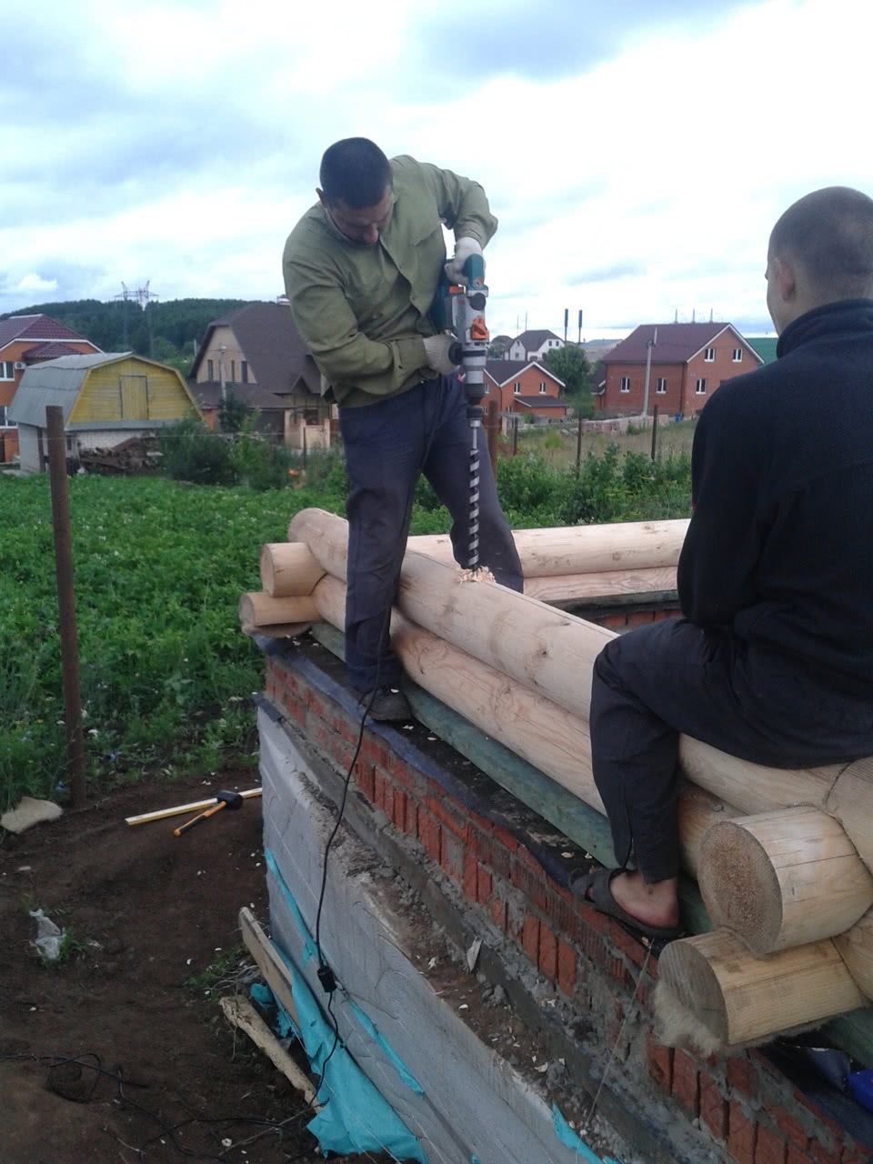 Укладка первого венца на фундамент