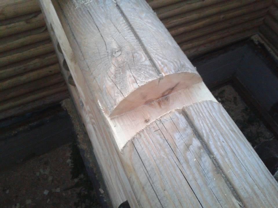 Очевидно, что оптимальным вариантом является паз полукруглой формы. Проделайте его бензопилой, для удаления остатков используйте стамеску.