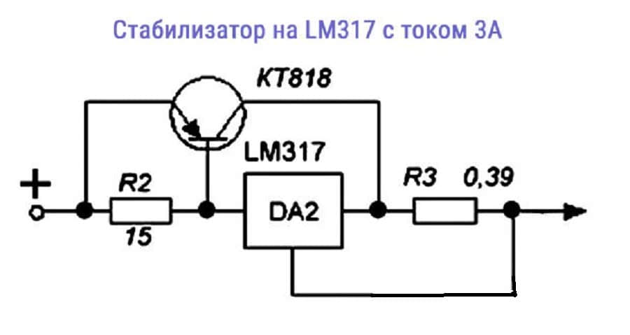 Для установки подсветки на автомобиль, большего количества led-ламп можно увеличить ток стабилизатора до 3 А. Для этого в схему включают мощный транзистор КТ 818.