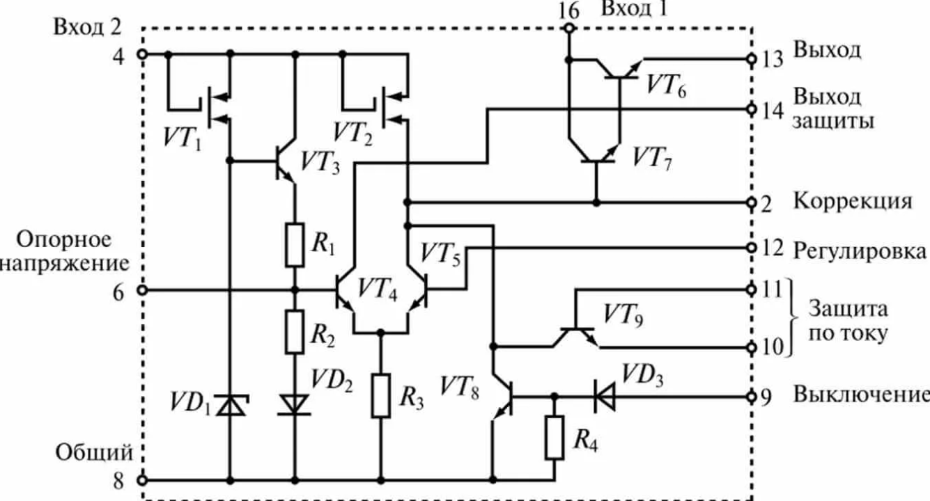- VIn – вход, куда подают напряжение, предназначенное для регулировки;