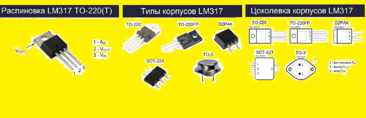 Каждый из трёх выводов LM317 обладает следующим назначением: