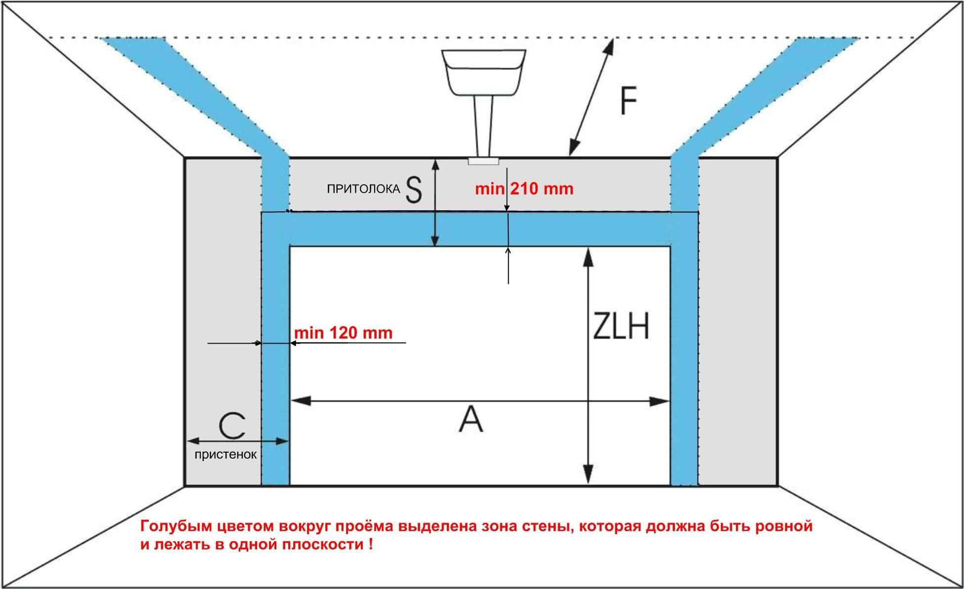 - конструктивные особенности разных дверных механизмов, расстояния до потолка и стен, для крепления полотен;