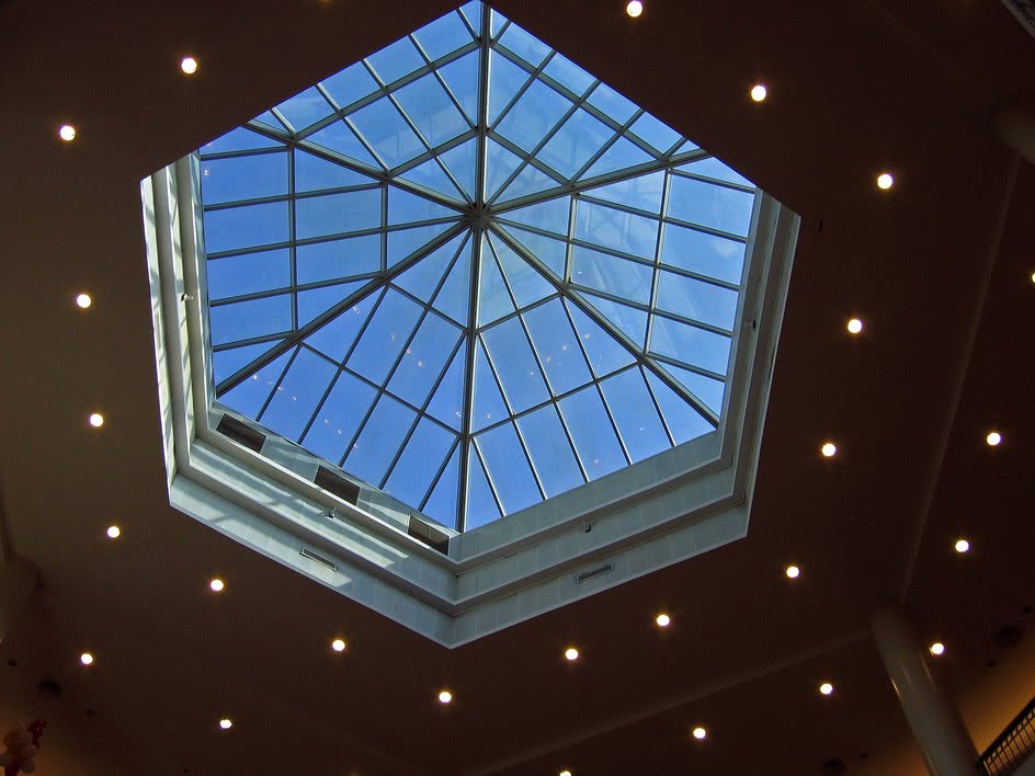 Готовую конструкцию зенитного фонаря практичней всего застеклить или стеклопакетами, или листами из поликарбоната. Для легкой и прозрачной кровли, перекрывающей сезонную постройку, предпочтителен прозрачный шифер из поликарбоната. Стеклопакеты и стекло различны в своих формах, состав и толщину стекла рассчитывают в зависимости от нужных характеристик по прочности и светопроницаемости, учитывая возможные капризы природы. Для остекления купола можно подбирать стекло с разной степенью прозрачности, в зависимости от дизайнерского проекта, купол может быть полностью прозрачный или цветной. Можно использовать матированное стекло с нанесенным многослойным рисунком с помощью метода пескоструйной обработки.