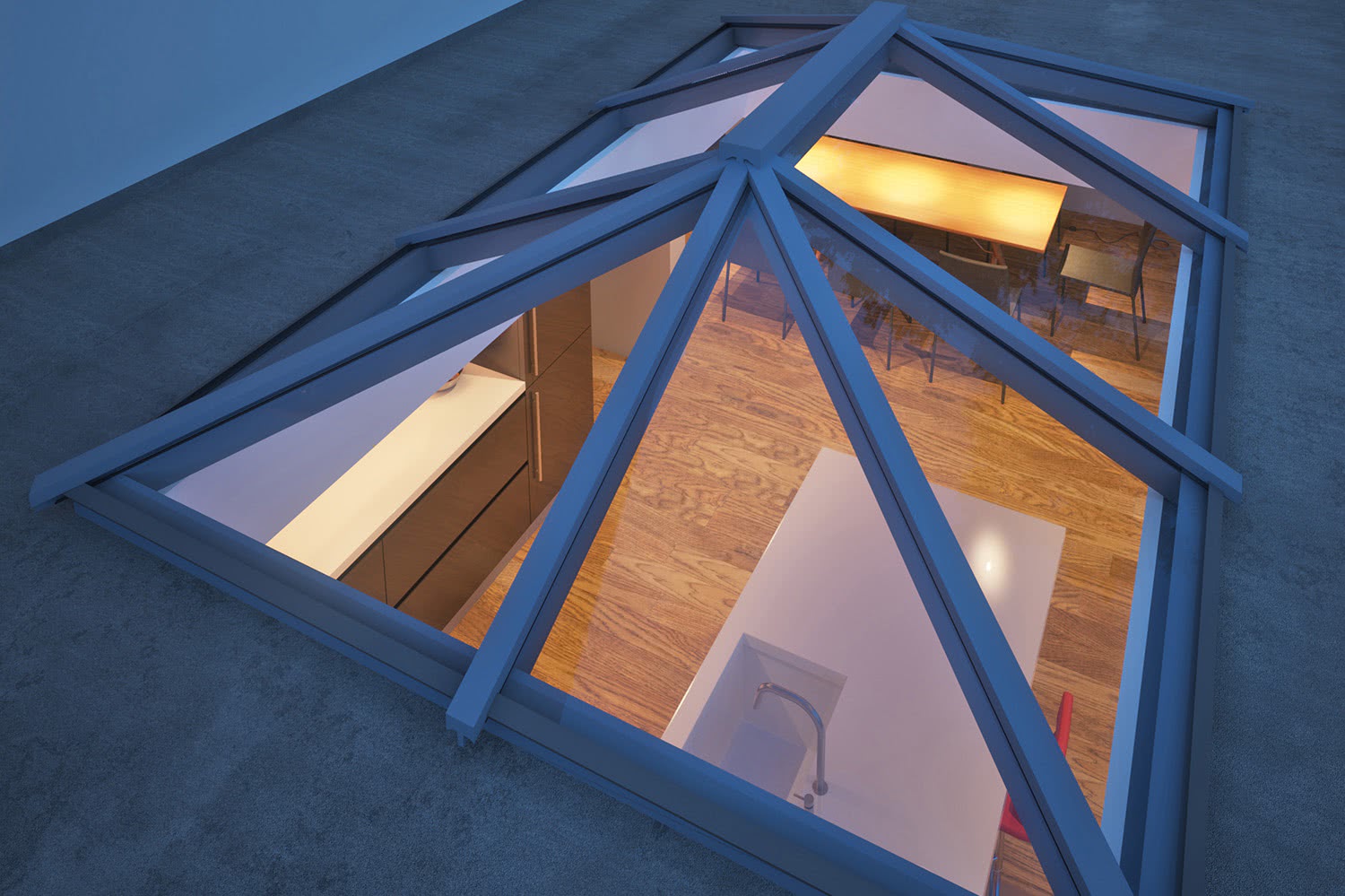 Стеклянную крышу дома часто оснащают специальными лючками. Для удобства они оснащаются приводами механического или автоматического типа.