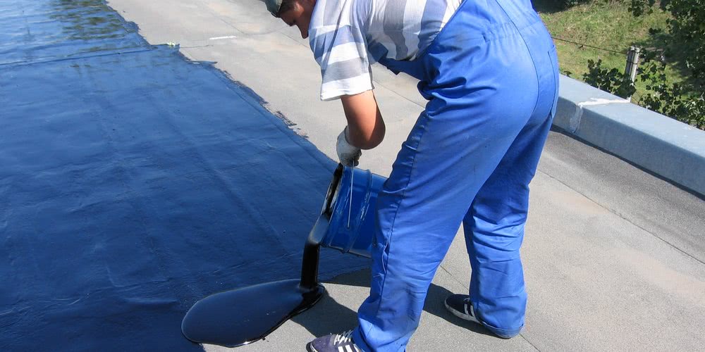 Совет! Если крыша деревянная, следует предварительно смонтировать сплошную обрешетку из обрезной доски или водоупорной фанеры. Следом также наносится битумная смесь и оставляется до полного высыхания. Если использовать не полимерный, а водный праймер, скорость работы возрастает. Приступать к покрытию крыши гаража без предварительной гидроизоляции не следует, чтобы не получить протечки кровли