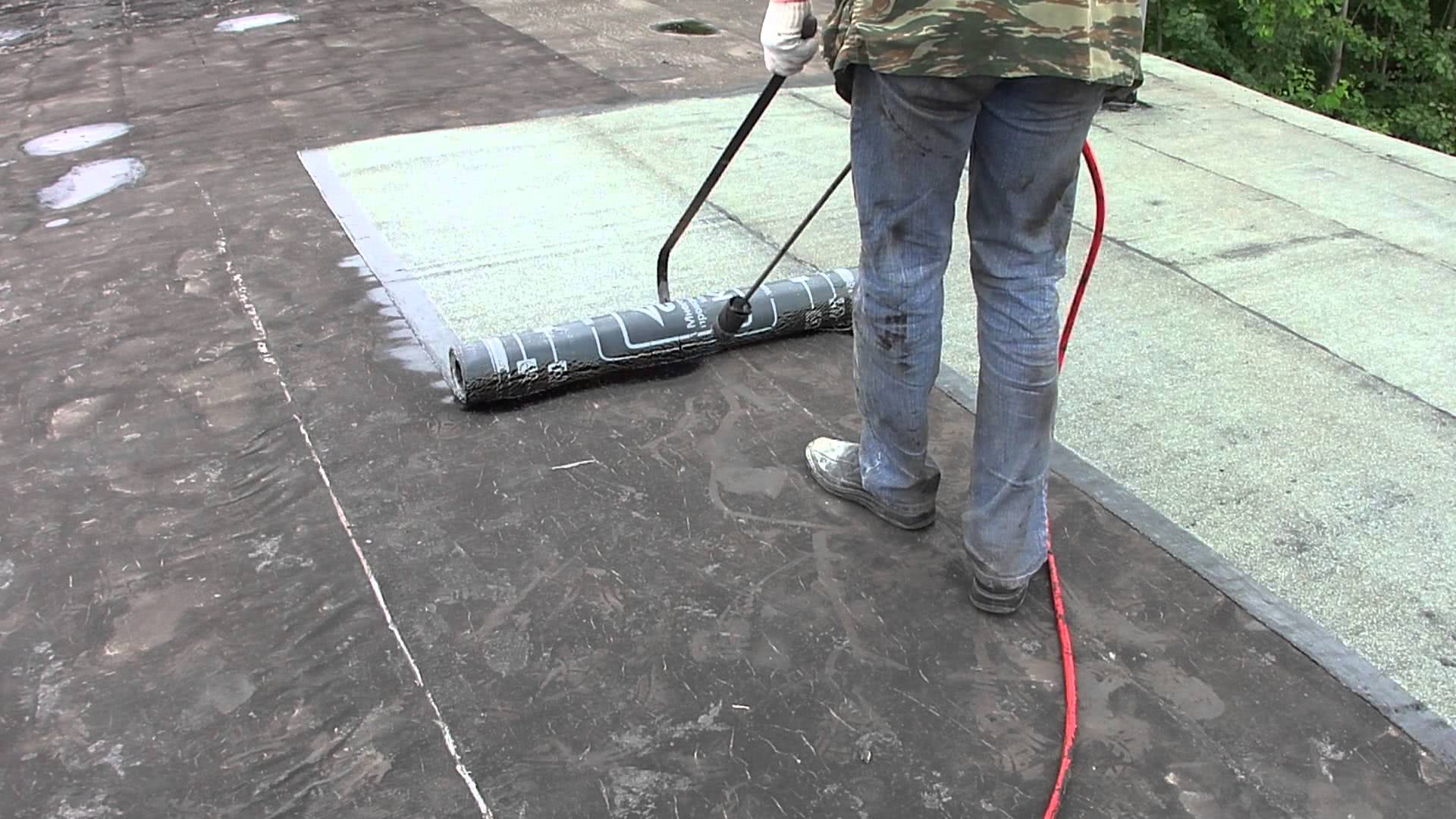 - поверхность покрыть битумной мастикой или праймером на основе полимеров – процедура требуется для усиления адгезии кровельного материала с основанием, нанесение проще всего выполнить валиком на длинной ручке;