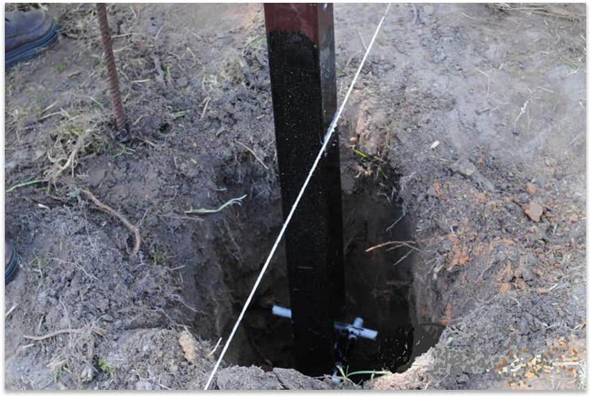 Для того чтобы правильно установить столб, важно обеспечить качественную гидроизоляцию той его части, которая будет погружена в грунт. Опоры из дерева, не защищенные от контакта с почвой, простоят 5-7 лет и сломаются от ветров или иных нагрузок