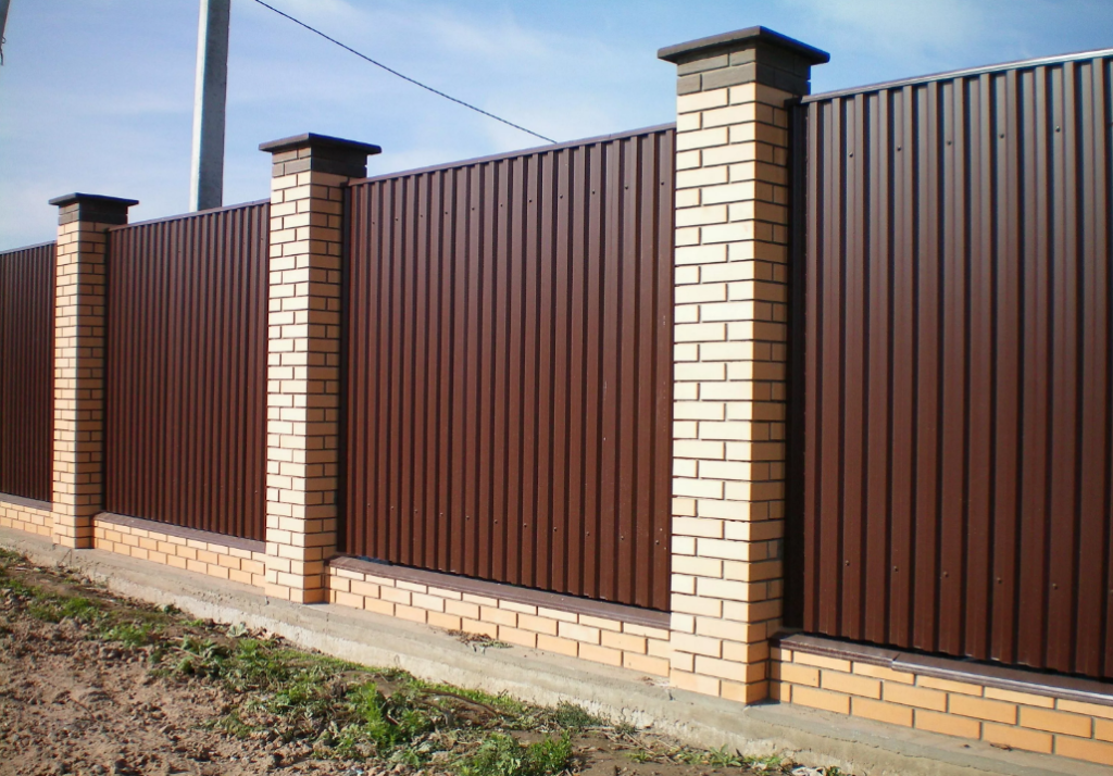 Сегодня есть много всяких вариантов сооружений для огораживания участков, но в последнее время все большее распространение получают ограды из профнастила с опорами из кирпича.