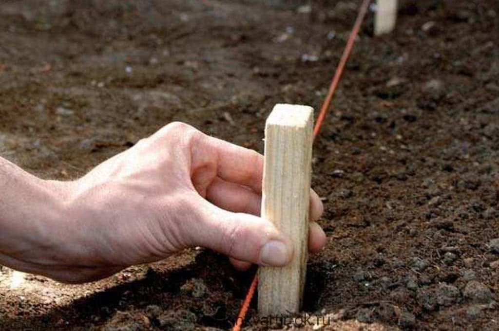 В промежутке между первыми кольями нужно разместить промежуточные. Расстояние между ними должно быть одинаковым и совпадать с шириной прогона.
