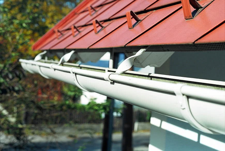 Хотя бы 1-2 раза за сезон проводите прочистку желобов и водосточной системы от скопившихся листьев и прочего мусора. Если вода будет отводиться, это спровоцирует дополнительное намокание стен и прочие проблемы.