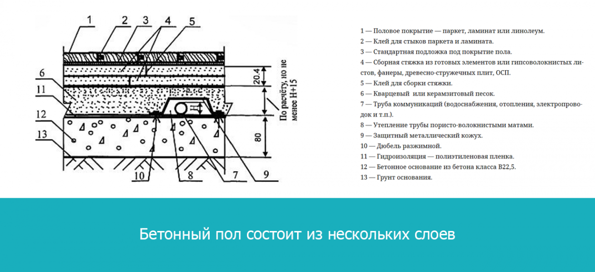 Второй момент — как будет заливаться пол: по грунту или по старому полу, который может быть деревянным или бетонным. Бывает так, что частный дом построен с деревянным полом, но через несколько лет владельцы решают залить пол из бетона. Здесь следует учесть следующие моменты: