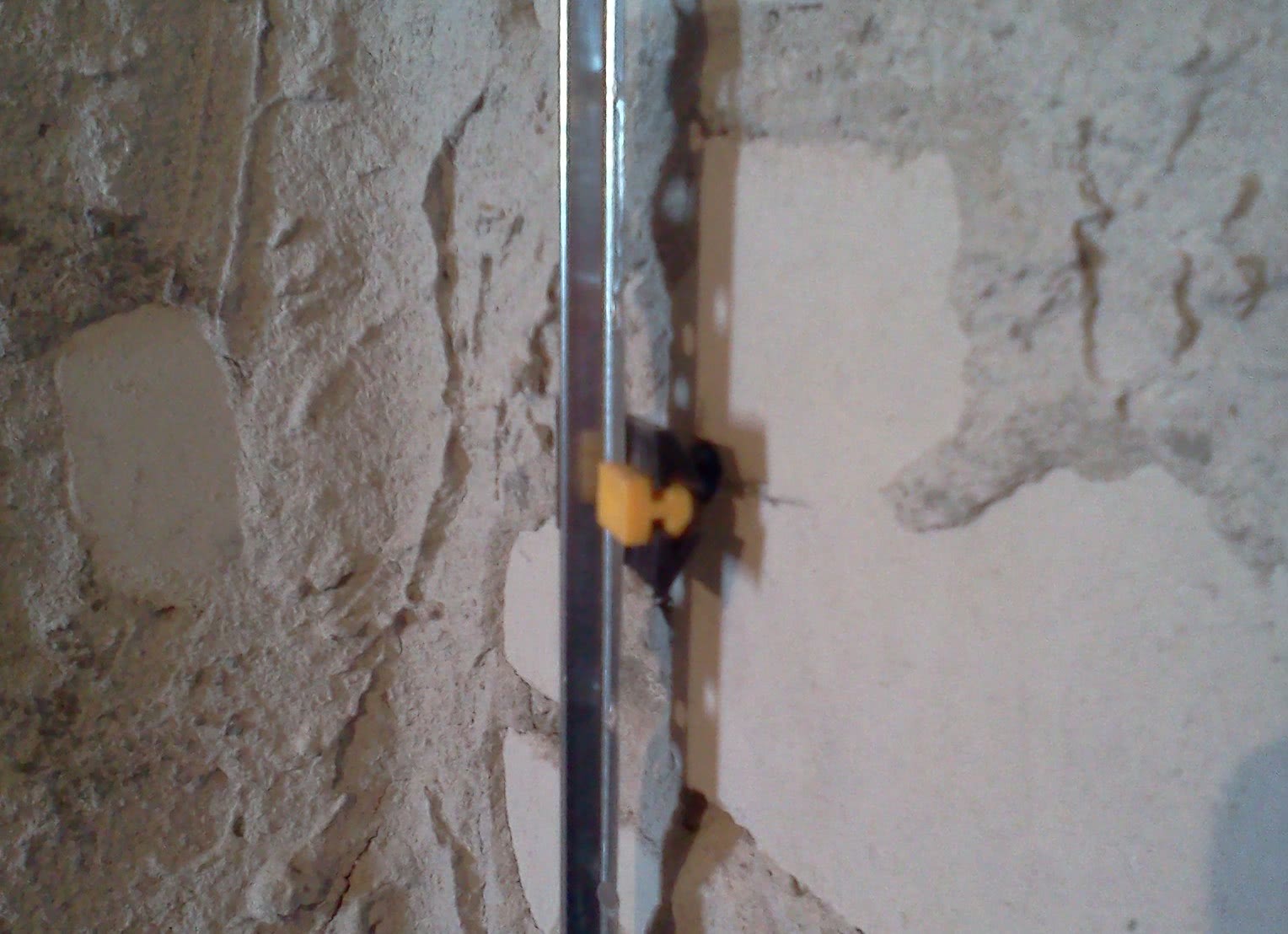 Перед оштукатуриванием обязательно выставляют специальные металлические маяки. Опытные строители советуют закреплять их на стартовый шпаклевочный состав или же на алебастр. Также некоторые крепят их на обычный клей, использующийся для укладки кафеля.