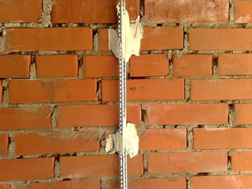 Для расчета расхода сначала нужно установить на стене штуки три маячных планки, лучше выбрать самое выступающее место, самое маленькое и любое другое.