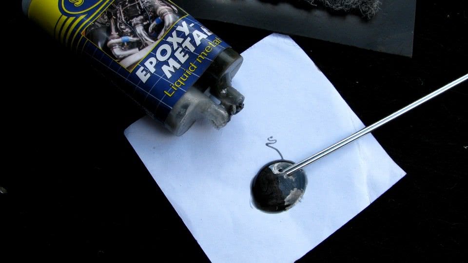 Для металла тоже разработан особый сорт эпоксидного клея. Его также можно использовать в качестве шпаклевки. То, что он для металла или для пластика, вовсе не означает, что его нельзя использовать для других поверхностей. Такой клей используется при температурах от +5 до +90 градусов, а при застывании он становится морозоустойчивым. Позволяет склеивать металлы между собой, а также металлы с другими материалами, кроме тефлона и силиконовой резины, так как в состав входят реагенты, которые негативно влияют на них. Клей двухкомпонентный, застывает в течение 10 часов, а готовую смесь нужно выработать за 15 минут.