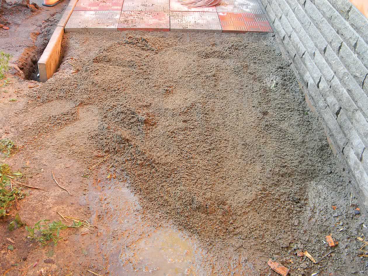 Тротуарная плитка должна быть уложена на песок. Он должен быть грубым и зернистым.
