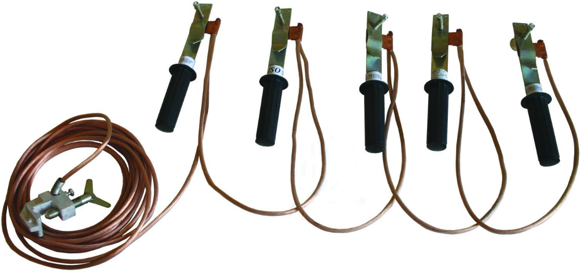 Существуют комплекты и для однофазных электроустановок, состоящие из одного проводника с зажимами на концах.