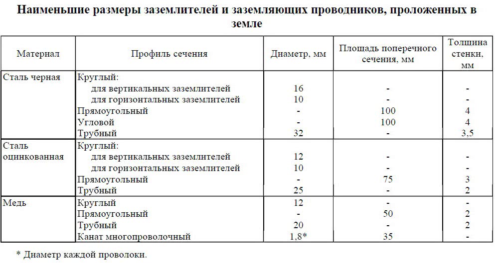 Для таких типов заземлений предусматриваются заземлители с проводниками, сечение которых составляет 16 кв.мм. К ним относятся данные марки: