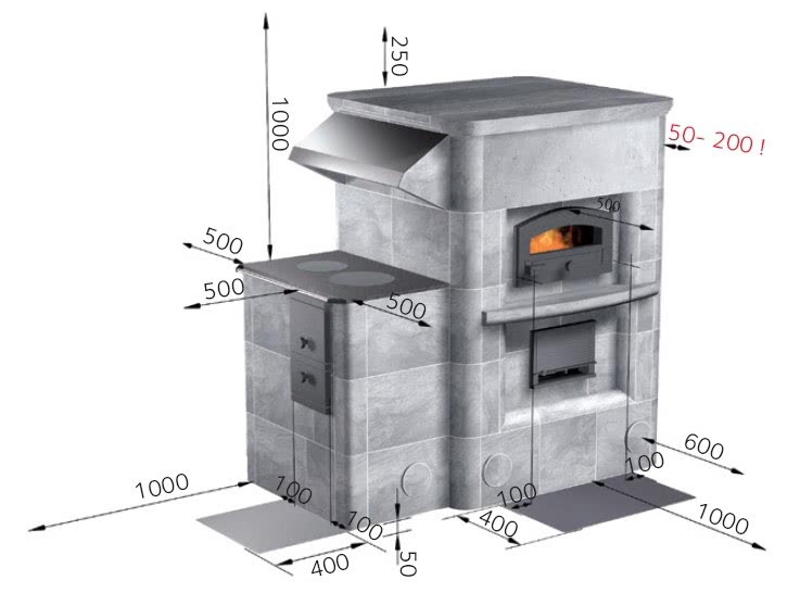 Теперь вместо двух дымоходов для печи достаточно одного. На практике это означает, что вся печь равномерно прогреется сверху донизу независимого от того, в какой из топок – камина или духовки, сжигаются дрова. Такое решение имеет высокий КПД и позволяет, кроме того, более экономно расходовать дрова.