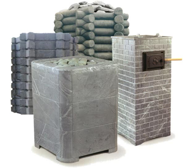 - Талькомагнезит – наиболее подходящий камень для «основы» обогревающего камина благодаря своей высокой теплопроводности и теплоемкости (в несколько раз выше, чем у обычного печного кирпича) в сочетании с тщательно выверенным и продуманным процессом горения.