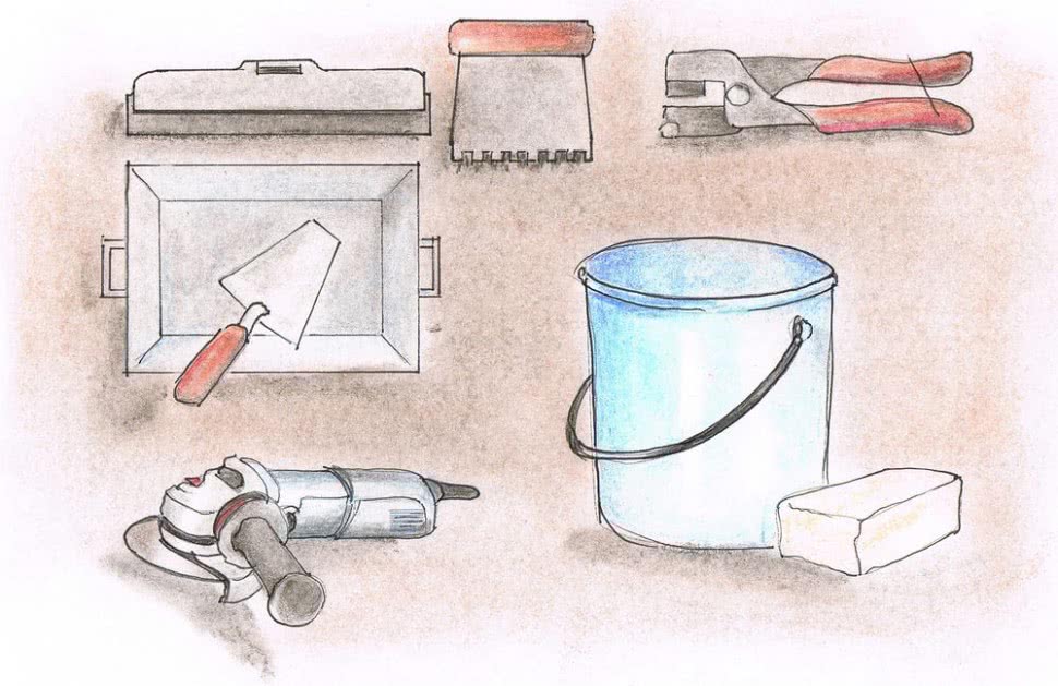 Вам, по крайней мере, понадобится ручной резак, чтобы обрезать плитку, но если у вас большие плитки, то понадобится режущий инструмент и угловая шлифовальная машина с подходящим диском. При нанесении затирки необходимо использовать резиновый ракель, губку, а также тряпки для сухой и влажной уборки. Конечно, пригодятся и емкости с соответствующей емкостью для приготовления клеевого раствора, затирки и выравнивающей массы.