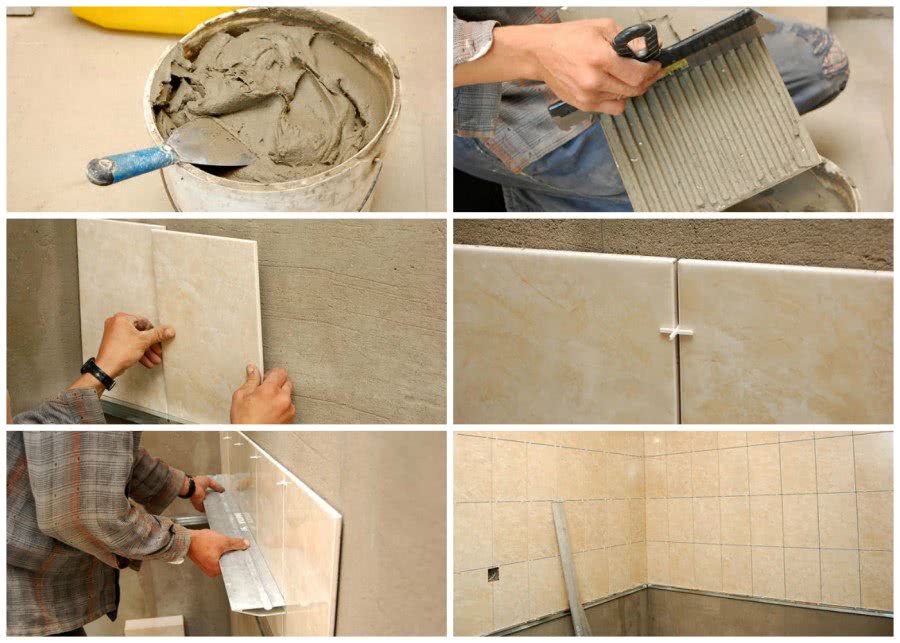 Укладка керамической плитки — шаг 9. Укладка плитки на стену.