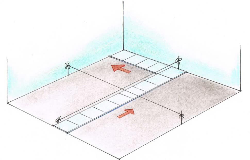 Укладка керамической плитки — шаг 6. Разметка плоскости — направленные полосы.