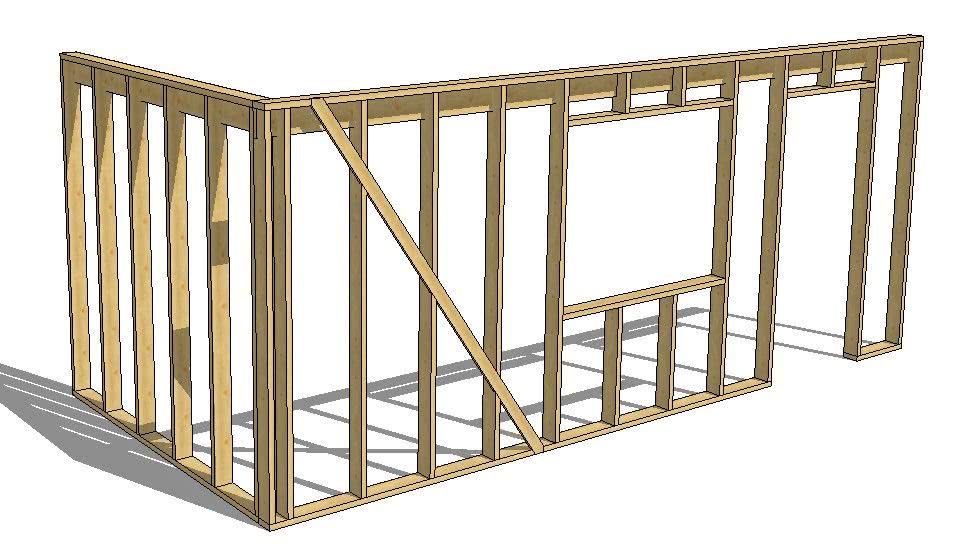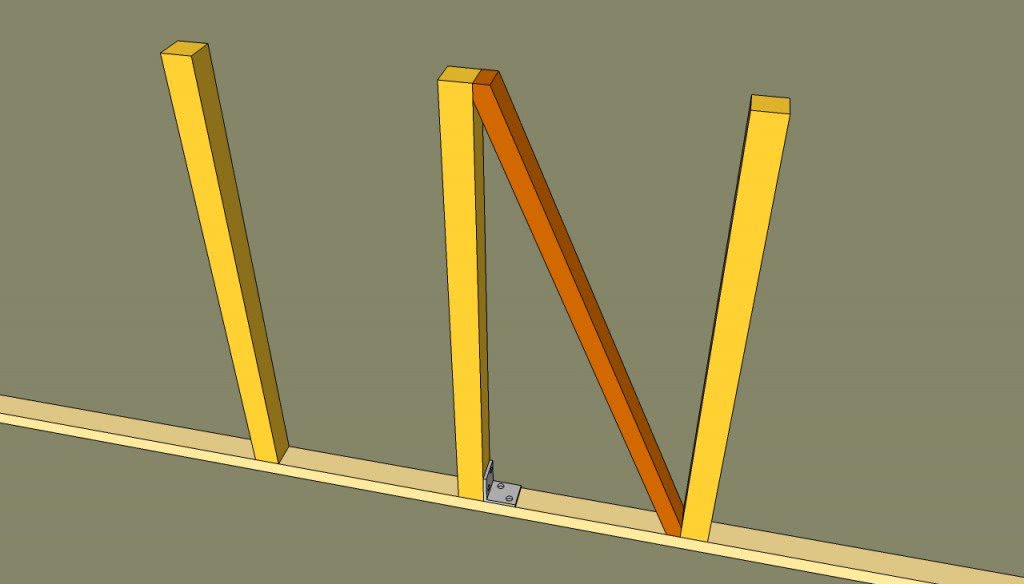 На одну стенку предусматривают как минимум две укосины по углам, одна будет с наклоном вправо, а другая — влево.