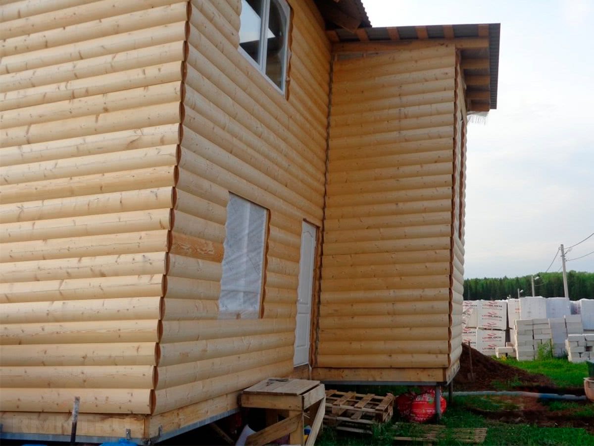- Следующий этап один из самых важных. Строится каркас дома из бруса как минимум 100 х150 мм. Для крепления, на торцах бруса делаются вырубки, чтобы они накладывались друг на друга. Соединения фиксируются нагелями. В некоторых случая угловые крепления брусьев крепятся металлическими уголками.