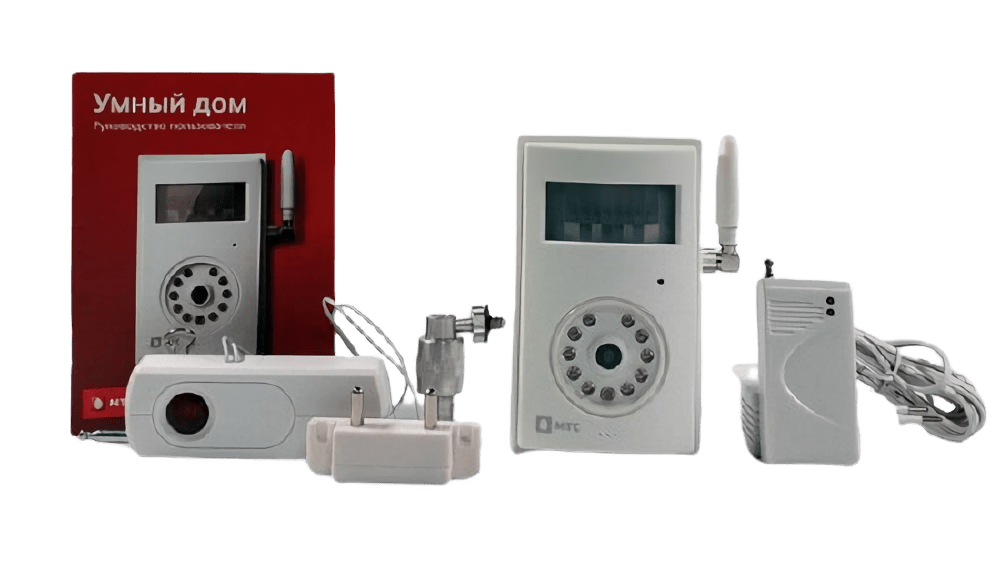 Универсальная беспроводная система «Умный дом» разработана МТС. Предназначен для круглосуточного наблюдения за помещениями городской квартиры. Возможна установка на даче, в загородном коттедже. Базовым элементом является видеокамера с GSM-модулем, оснащенная инфракрасным освещением, датчиками движения и температуры. Этот шлюз действует как охранная сигнализация: ведет видеонаблюдение, реагирует на движение в помещении, работает как звуковая сирена в случае несанкционированного доступа, отправляет видеоизображения на смартфон владельца.
