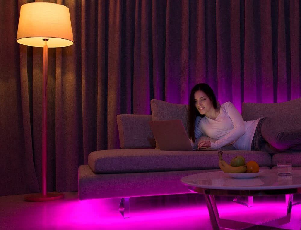 Для чего же нужна такая система? Все просто! Она позволяет осветить помещение так, чтобы создать в нем приятную атмосферу. Хотите просто посидеть пообщаться под приятную музыку? Включите теплый желтый свет. Если у вас вечеринка, то выбирайте более смелые оттенки, вроде фиолетового или зеленого.