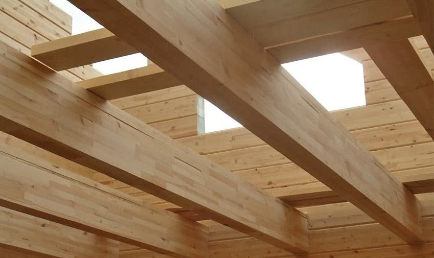 Основной материал, используемый для балок подобной вариации – древесина лиственной и хвойной породы, тщательно просушенная и прошедшая специальную обработку, что позволяет улучшить её эксплуатационные и технические параметры. Подобное балочное перекрытие включает в себя непосредственно сами балки, утеплитель, накат и пол.