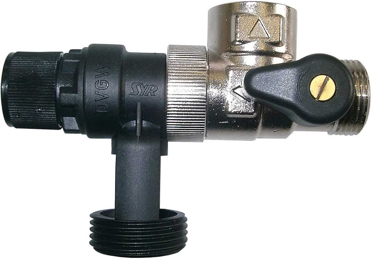 Правильное размещение клапана – между запорным краном и емкостью. Когда резьба соответствует, то он накручивается на патрубок емкости, а потом на него накручивается кран.
