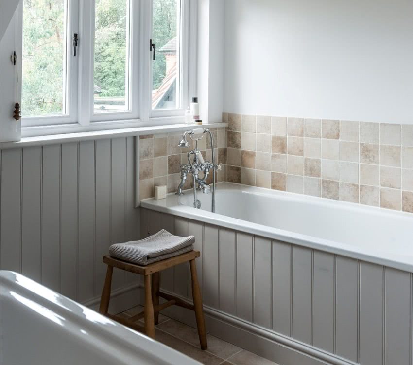 Комбинация в отделке ванной керамической плитки и ПВХ-панелей