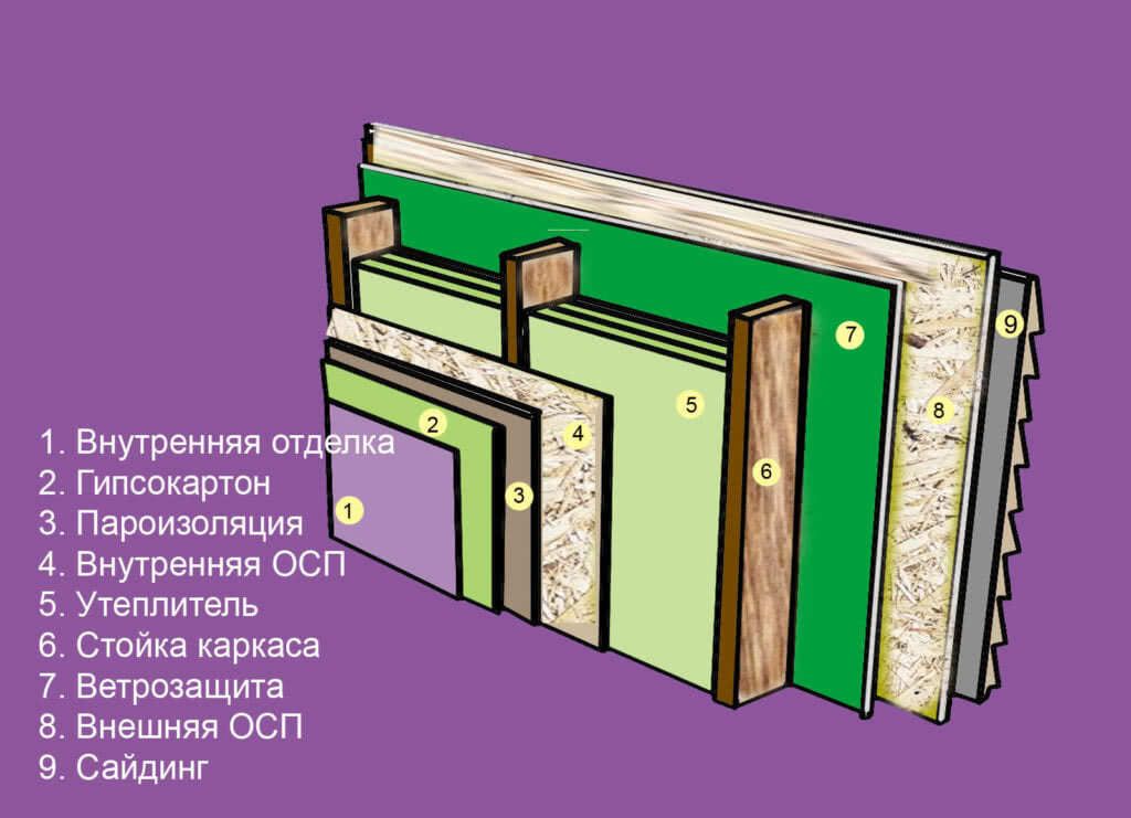Устройство стены каркасного дома