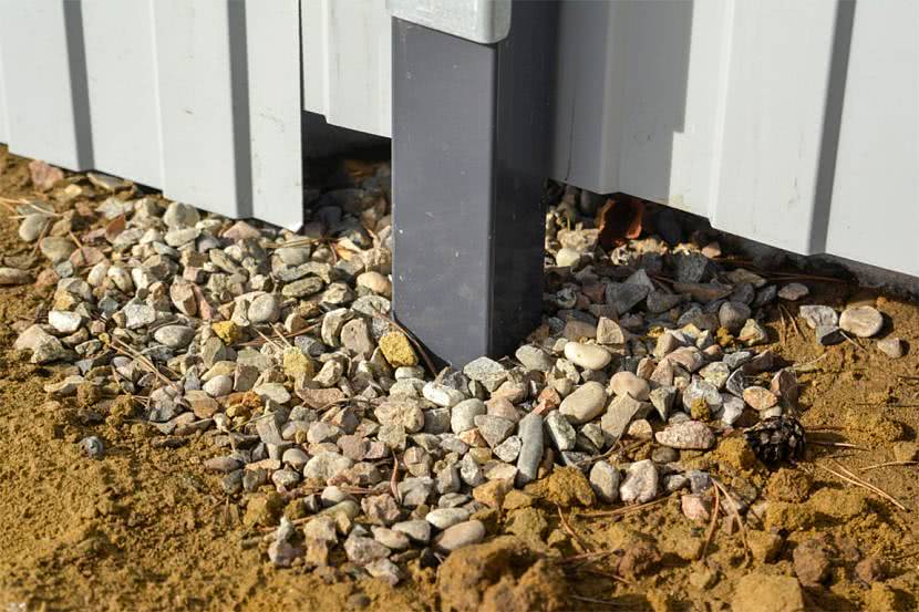 Грунт с большим содержанием песка, во время дождей или после таяния снега, может сдвигаться, образуя трещины или оползни. В этом случае рекомендуется использовать винтовые сваи в качестве столбов для ограждения. Их вкручивают в почву на глубину ниже точки промерзания.