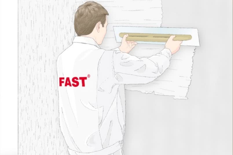 Поверхность, к которой будет прикрепляться утеплитель, должна быть ровной и чистой. Все перепады при подготовке стен дома необходимо удалить, потому что это может спровоцировать разломы пенополистирола при его установке. Колебания равномерности не должны превышать 1-2 см, а крупные бугорки можно сбить молотком, после чего аккуратно удалить все отслоения. Также, если ранее наносилась краска или побелка, ее нужно снять и удалить пыль и грязь.