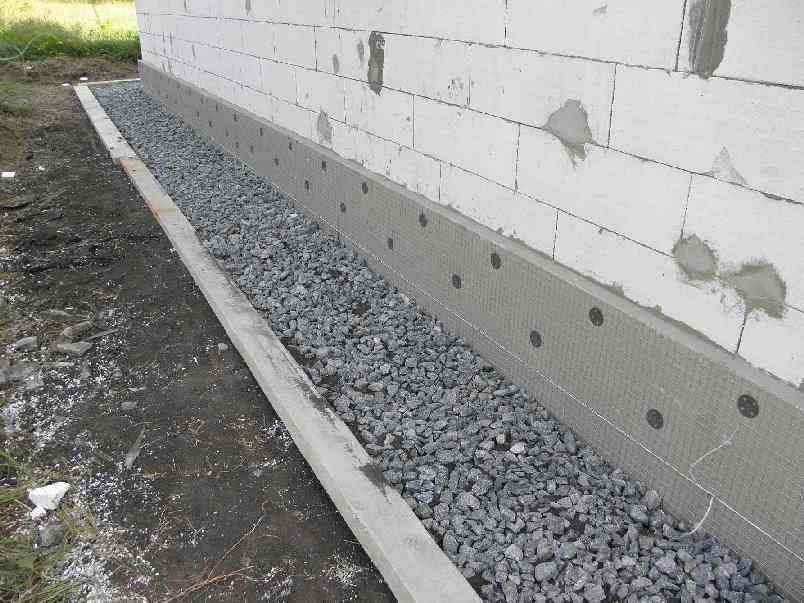 Когда дополнительная защита от влаги будет установлена, по периметру фундамента выкапывается углубление шириной около метра. Высота должна быть равна фундаменту. Земле необходимо хорошо просохнуть.